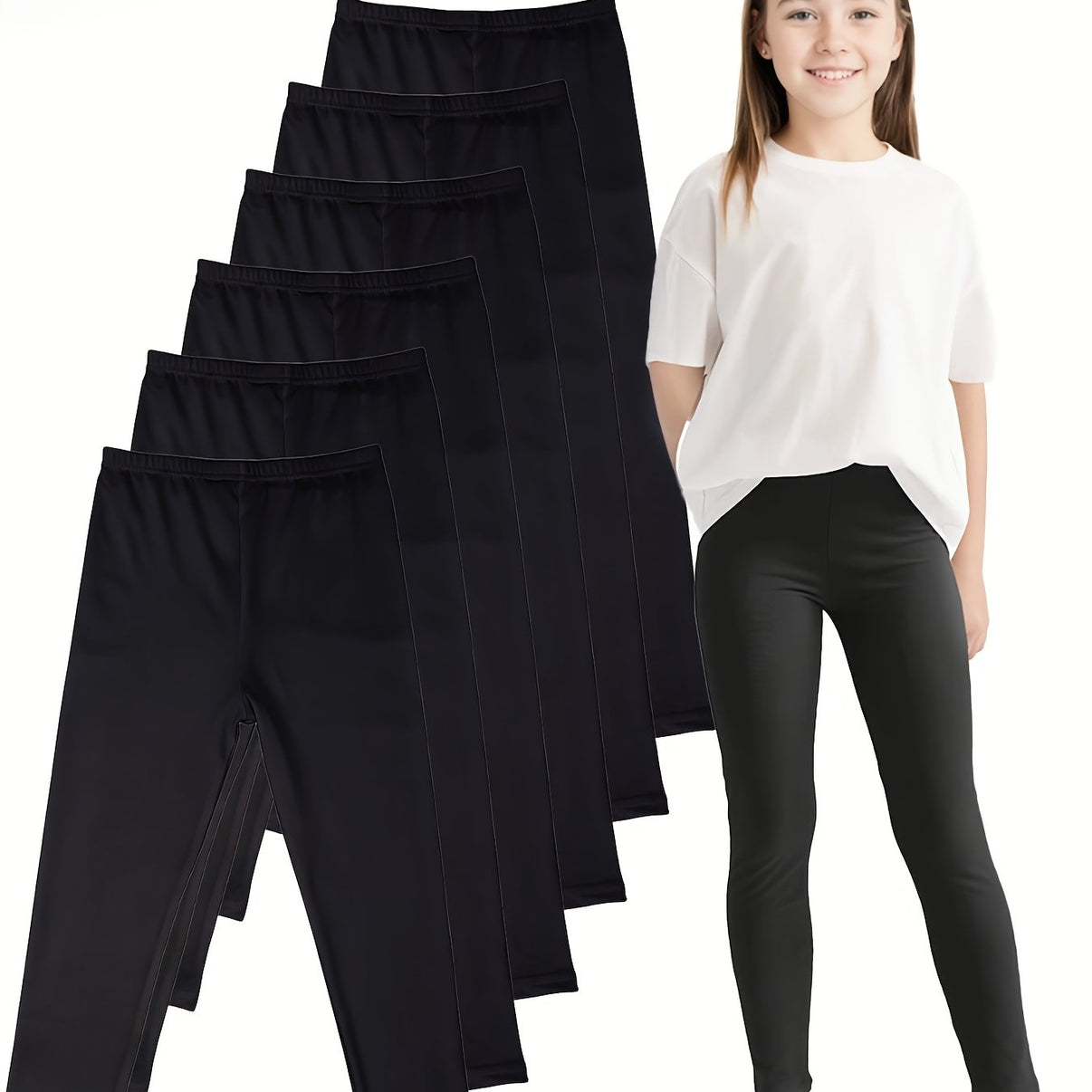 Soft, stretchy 6-pack of black girls' leggings crafted from a comfortable polyester-elastane knit. Skinny fit with slight stretch provides everyday comfort, easy layering for all seasons, and versatile wear for play or casual outings.