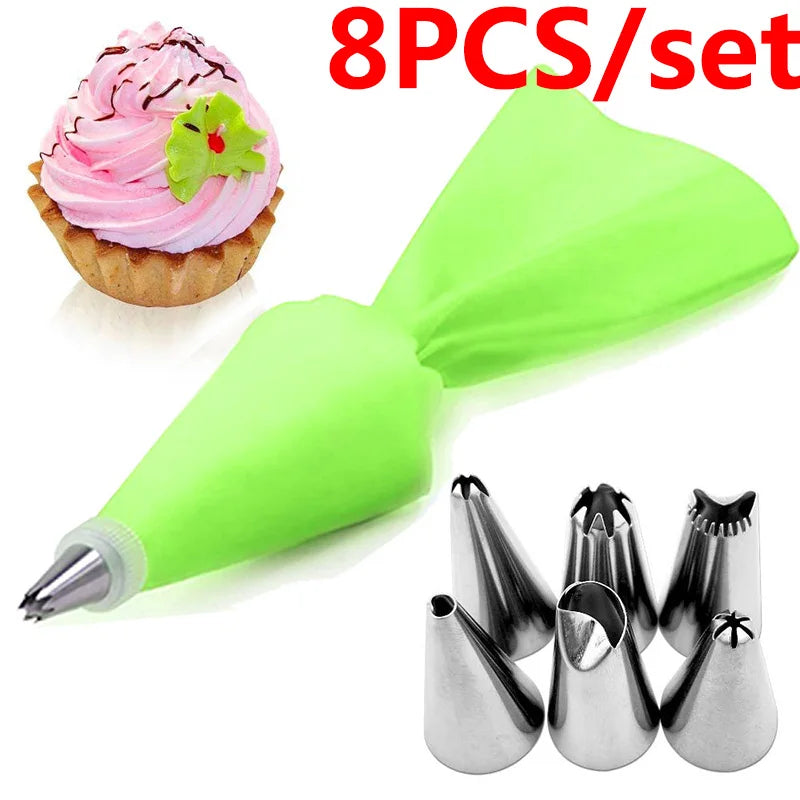 Materials: Silicone pastry bag, Stainless steel nozzles, Plastic components