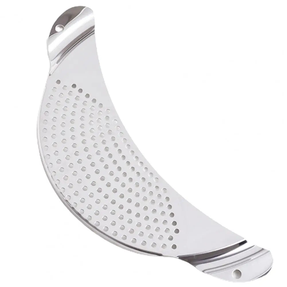 Introducing our stainless steel strainer, the perfect kitchen tool for all your draining needs! This versatile strainer is designed with a half-moon shape to fit most pots and pans, making it ideal for filtering out moisture from pasta, fruits, vegetables, and more. Crafted from high-quality stainless steel, this strainer is built to last. It features handles on both sides for easy handling and hanging holes on the side, allowing you to conveniently save space in your kitchen. The specially designed clip attachment ensures a secure fit on almost all round pots, pans, large and small bowls. With its fine-hole spout, this strainer drains quickly and efficiently without any spillage. Say goodbye to messy spills while draining pasta or pouring out rice water or soup. Its durable construction and efficient design make it a reliable choice for all your draining needs. Whether you're a professional chef or a home cook, our Stainless Steel Strainer is a must-have kitchen accessory. It's perfect for draining pasta, vegetables, fruits, rice water, soup, and more. Don't settle for flimsy strainers that break easily – invest in our sturdy and durable stainless steel strainer today! Order now and experience the convenience of our stainless steel strainer.