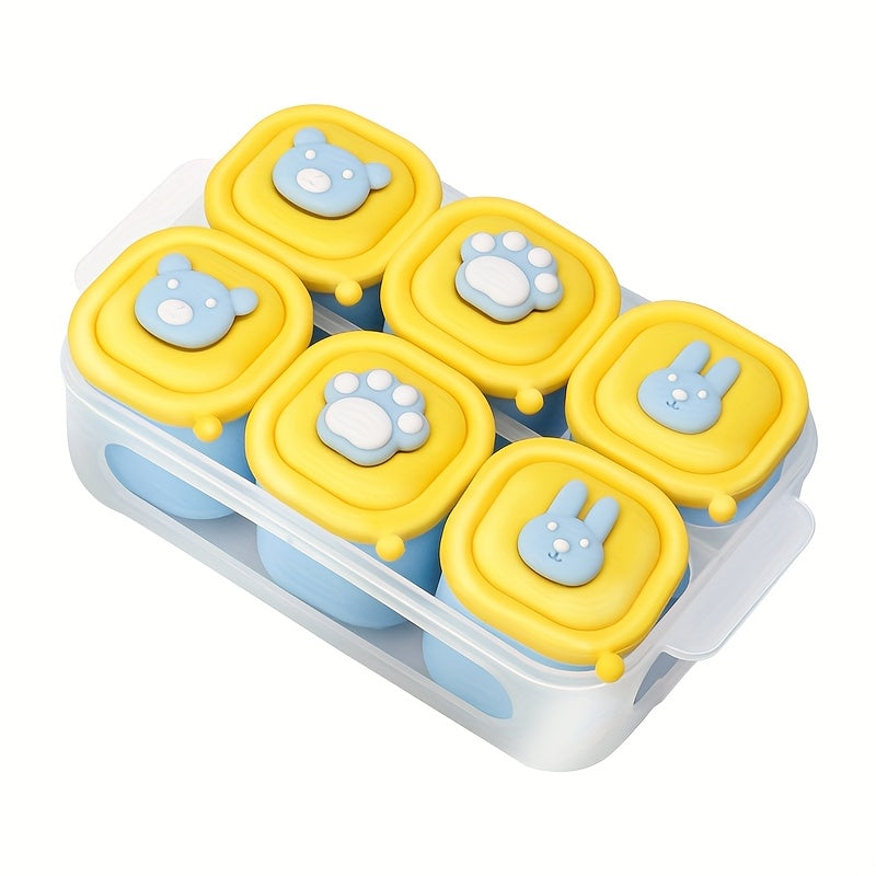 6pcs/Set Baby Food Storage Box, Cartoon Silicone Infant & Toddler Freezer Mold Bowl, Perfect for Complementary Baby Food Storage