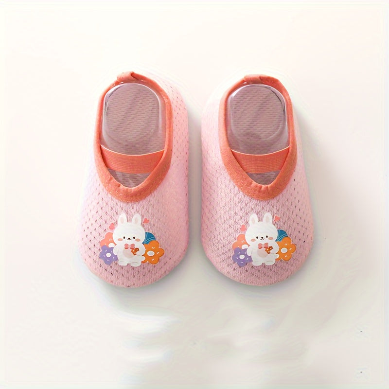 A Pair of Baby Girl's Adorable Cartoon Pattern Floor Socks - Comfy, Breathable, Casual Soft & Elastic Sock Shoes | Perfect for Spring & Summer
