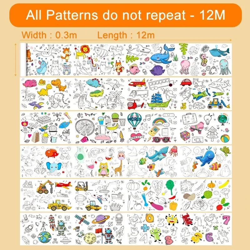 Package Includes: 1 pc Children's Drawing Roll (without adhesive backing or drawing pens)