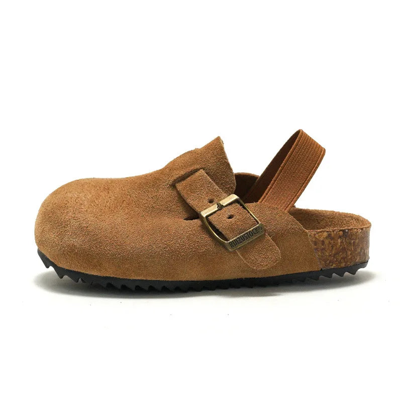 Autumn Winter New Children’s Softwood Sandals – Genuine Leather Boys’ Beach Slippers, Baotou Girls’ Frosted Leather Casual Shoes