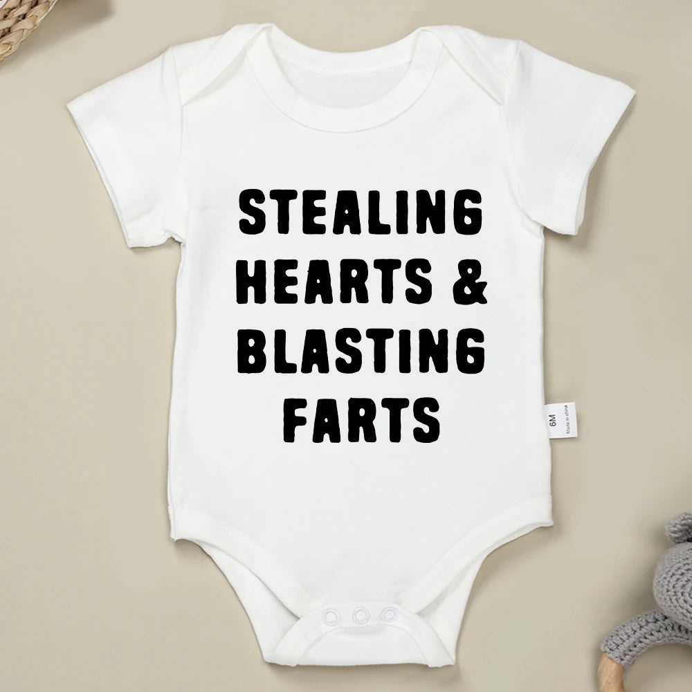 Creative Baby Onesie – "Stealing Hearts and Blasting Farts" Letter Print Funny Bodysuit – Comfy & Breathable Cotton Infant Clothes (0-24M)