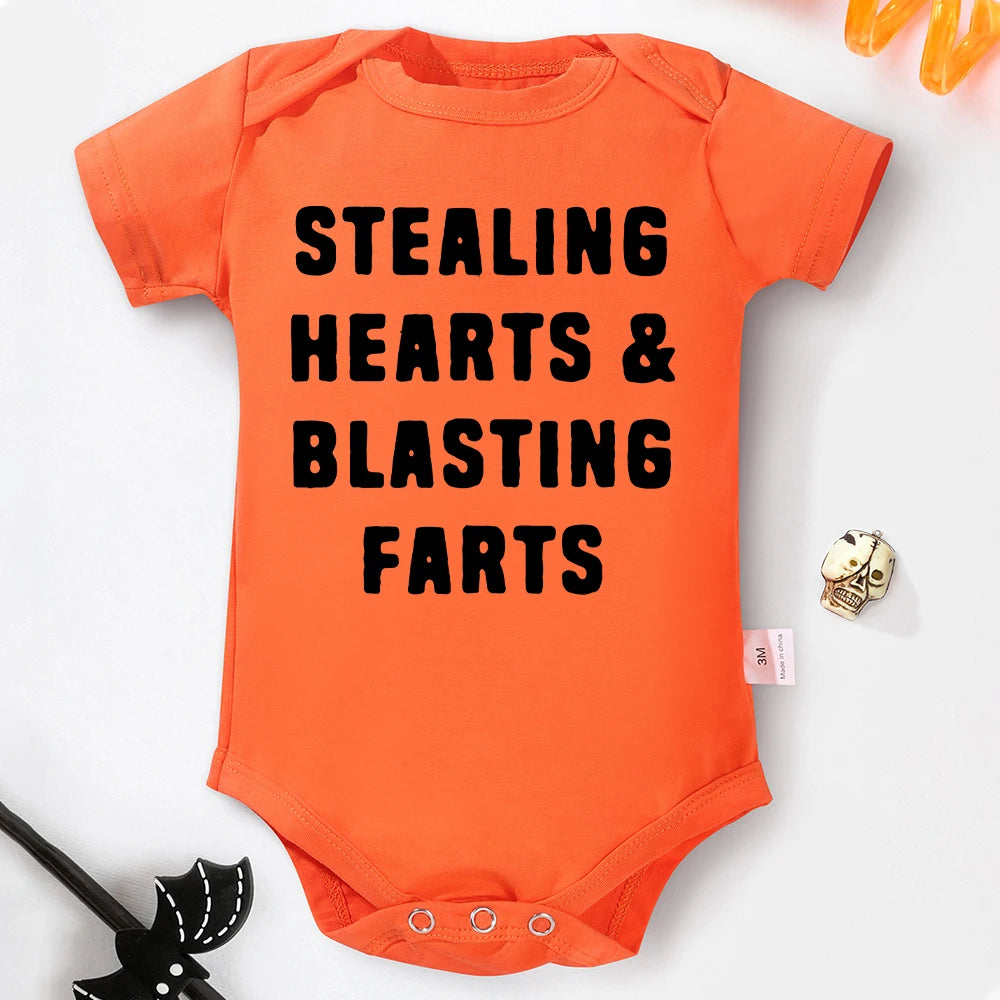 Creative Baby Onesie – "Stealing Hearts and Blasting Farts" Letter Print Funny Bodysuit – Comfy & Breathable Cotton Infant Clothes (0-24M)